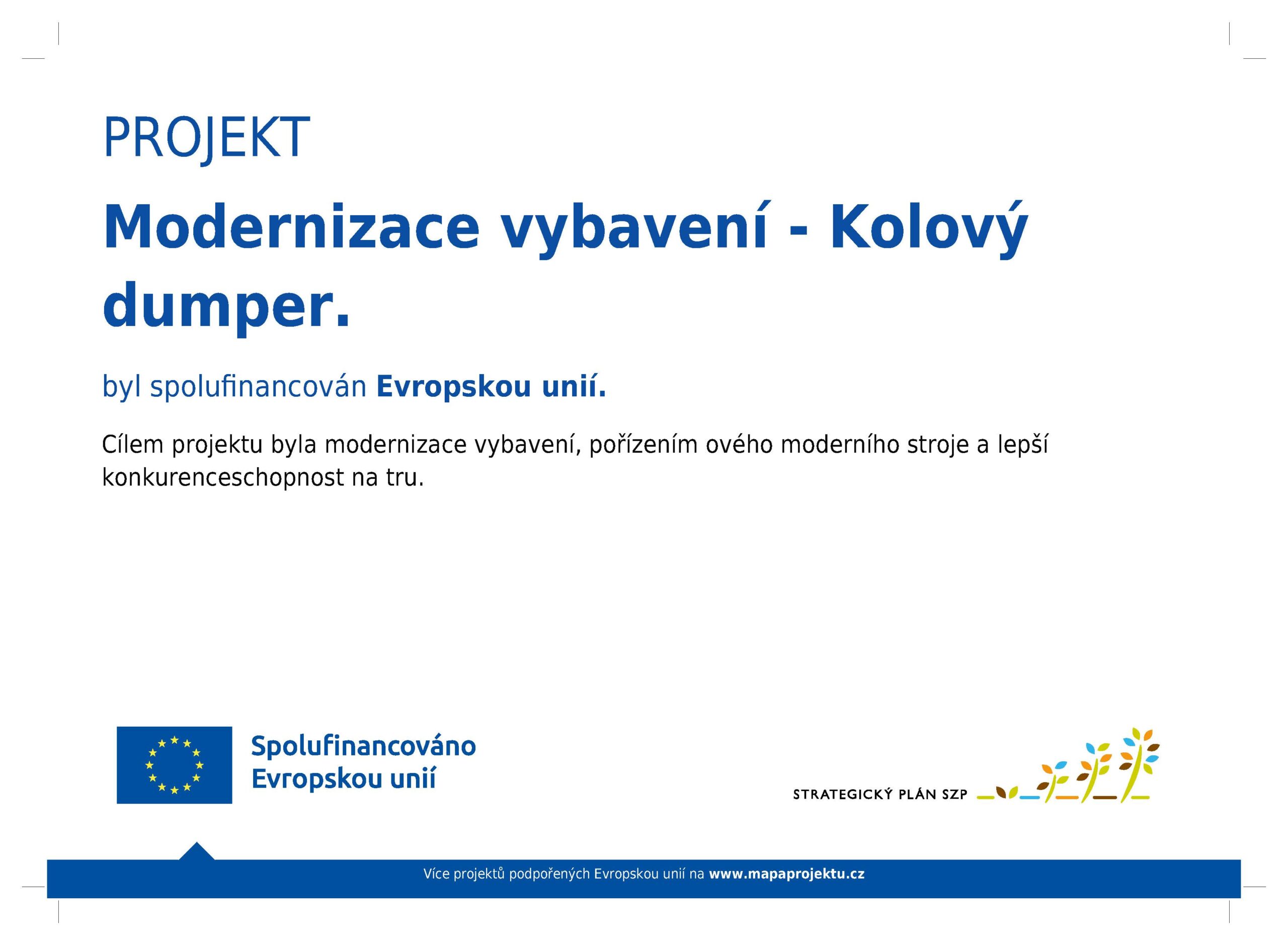 Díky dotačnímu titulu vypsaném SZIF prostřednictvím MAS Šumavsko, mohla moje firma pořídit nový kolový dumper.